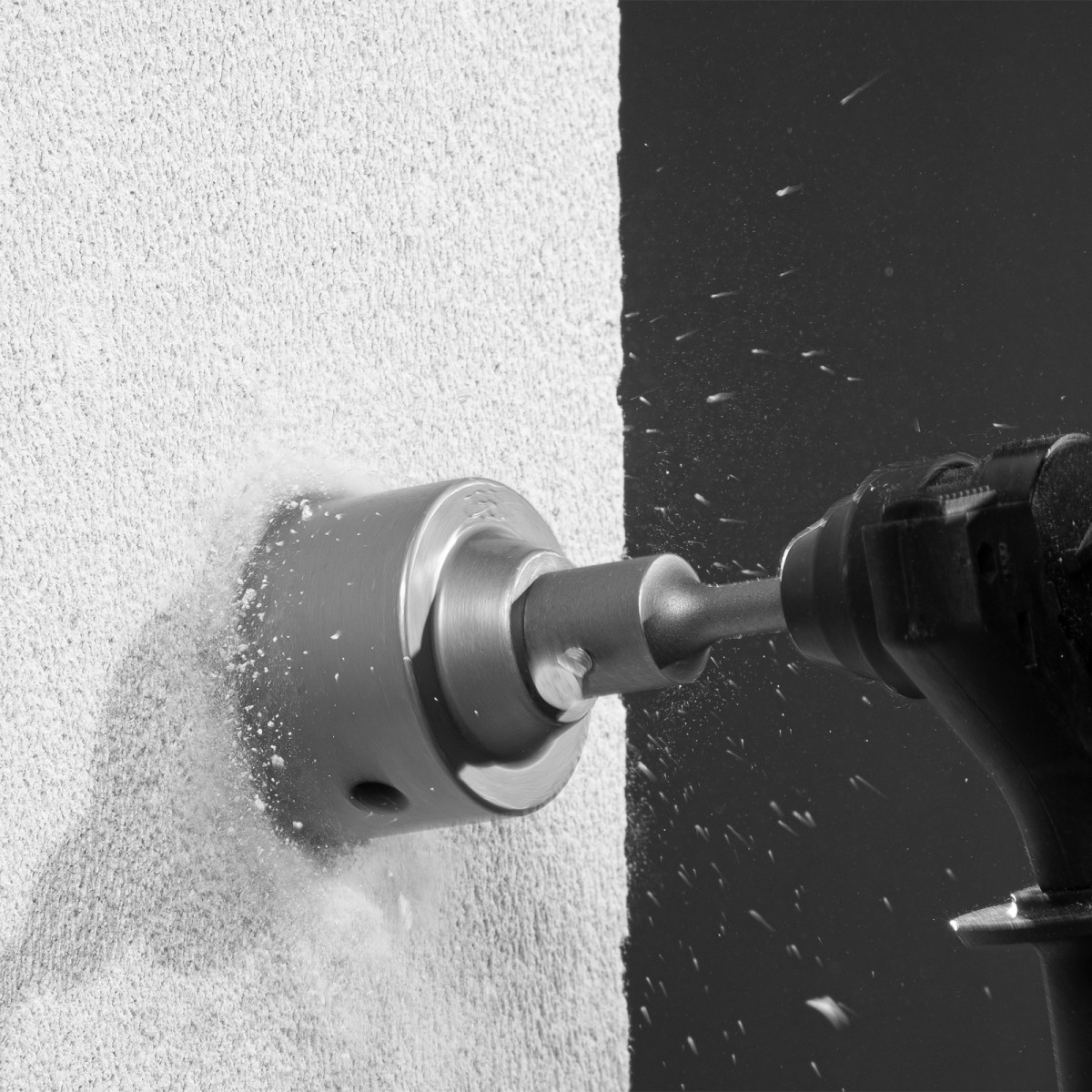 • Ровные отверстия — гладкий корпус коронки уменьшает трение, а центрирующее сверло предотвращает смещение коронки.