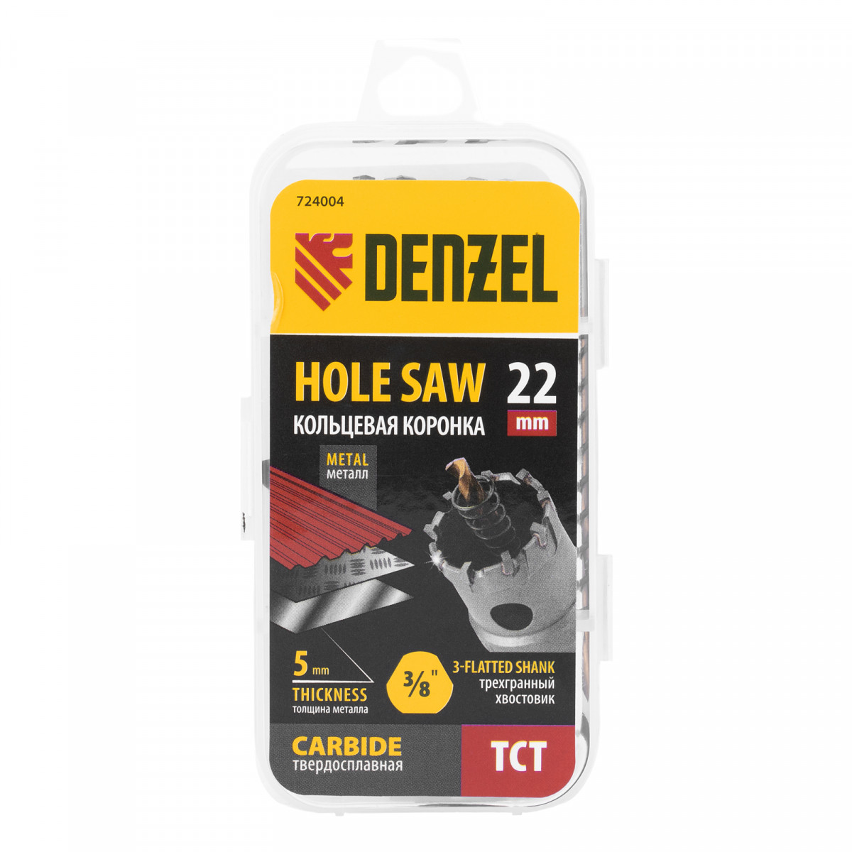 Коронка по металлу твердосплавная, 22 мм Denzel