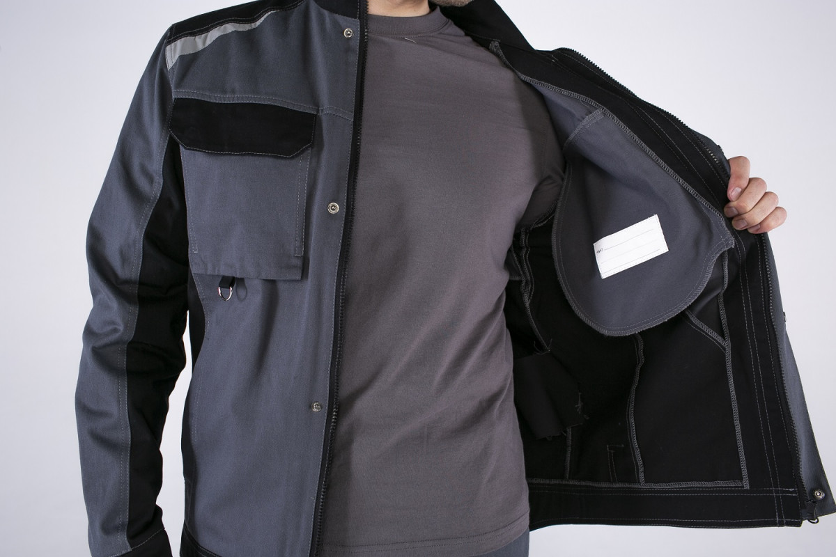 - на левый нагрудный накладной карман настрачивается малый накладной карман с двумя зональными отделениями и прорезными петлями