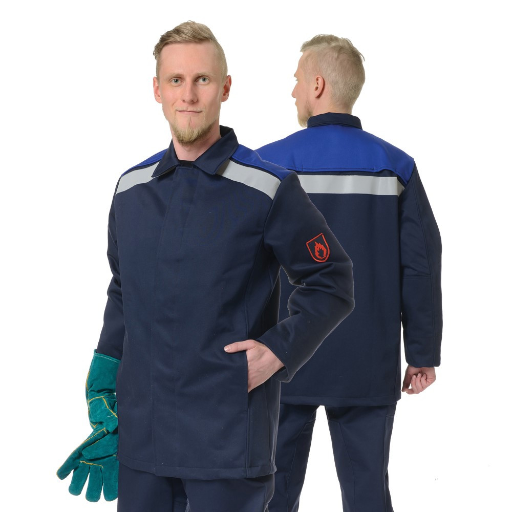 Куртка: прямого силуэта с центральной бортовой супатной застёжкой на пуговицы. Под рукавами — вентиляционные отверстия. Для обеспечения максимальной защиты по кокетке полочки и спинке проходит огнестойкая лента СОП XM-6011. Конструкция рукава разработана с учётом особенностей работы сварщика. Огнестойкие напульсники защищают от попадания во внутрь искр и брызг от расплавленного металла.