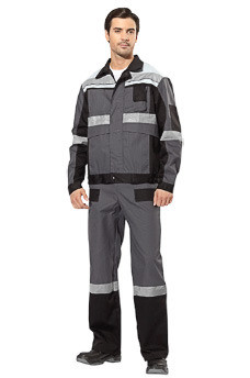 Куртка, укороченная с притачным поясом на резинке с супатной застежкой на молнию. По кокеткам, полочкам, спинке, рукавам и брючинам расположены световозвращающие полосы, что позволяет использовать костюм в условиях плохой видимости. Множество функциональных карманов, в том числе карман для средств связи с клапаном на липучке.