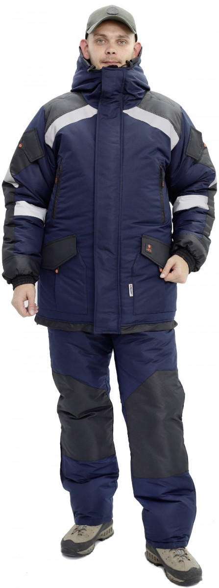 Прямая модель. Ткань Таслан. Куртка четыре слоя утеплителя, П/К два слоя. Молния Трактор-8 два бегунка. Куртка шесть карманов+один на молнии внутри. Внешние утяжки ниже локтей и на талии. Усиления на локтях, плечах и коленях. П/К два кармана. Капюшон не отстегивается. Две утяжки-регулировки капюшона по овалу лица и глубине. В куртке-подклад Hi-Tech(фольгированный). Низ брючин расстегивается. Температура в активном режиме-45С. СО полоса по госту. Размерный ряд с 44 по 70