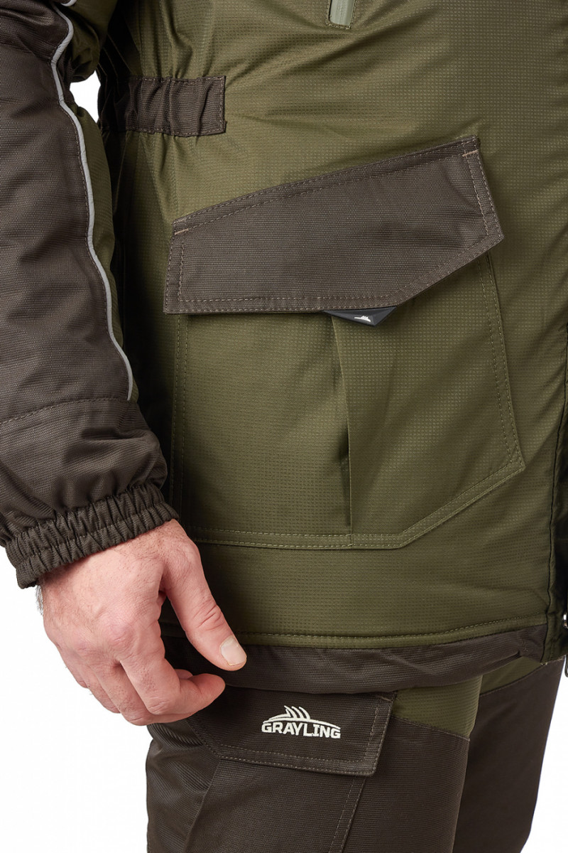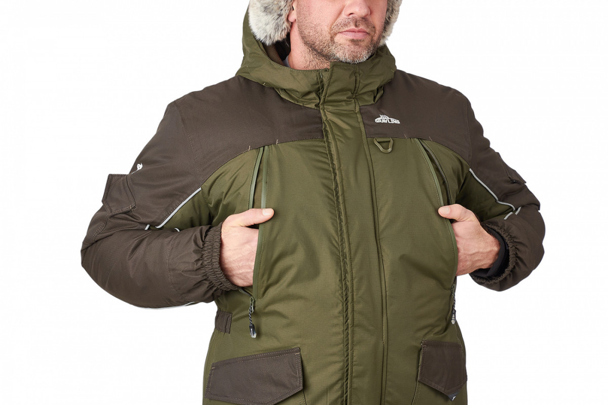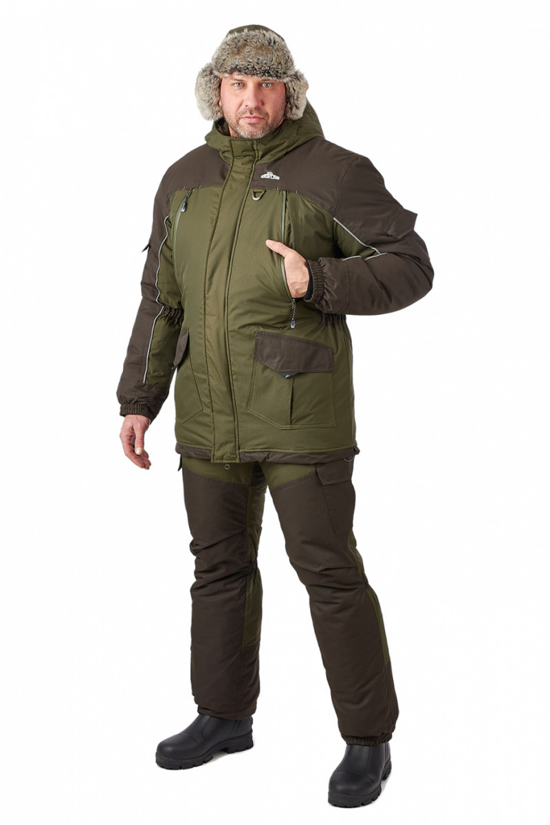 Костюм «Скат» Зима — Универсальный зимний костюм (дальний родственник знаменитой «Горки») специально адаптирован для людей, активно увлекающихся рыбалкой. Костюм состоит из длинной куртки и полукомбинезона анатомического кроя. Для изготовления костюма «Скат» Зима применяют современную нейлоновую ткань с мембранным покрытием, водоупорностью до 5 000 мм вод. ст. Для отделки и армирования используется мембранная ткань «кошачий глаз», которая обладает повышенной износоустойчивостью. Двойная защита от холода достигается за счет применения современного утеплителя «Термотекс». Хлопковый подклад обеспечивает оптимальный микроклимат. Костюм «Скат» Зима рекомендован для рыбаков и любителей активного отдыха в зимний период. Мембрана 10000/10000 анатомические утяжки на талии, локтях двойная ветрозащитная планка двухзамковая молния утеплитель
