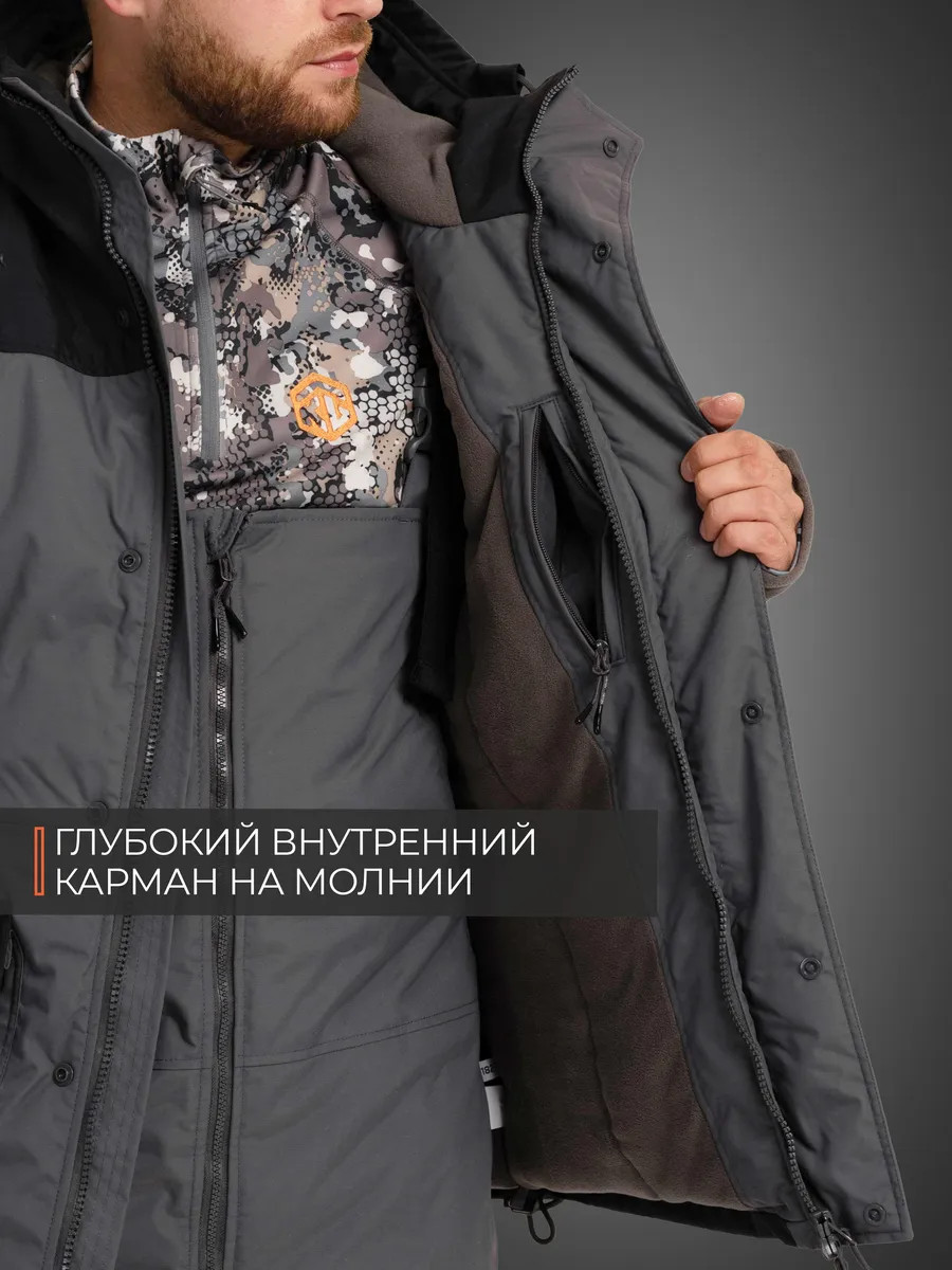 Зимний костюм STRONG -40 изготовлен из прочного материала Таслан, обеспечивающего защиту от холода и влаги в экстремальных условиях.