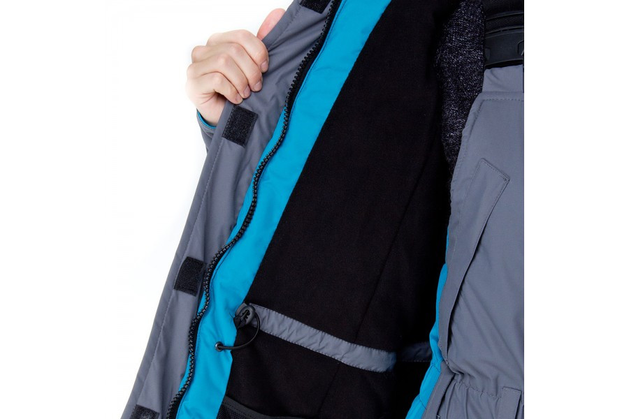 Куртка Центральная застежка на тесьму-«молнию» подкладка полочки и спинки из флиса нагрудные прорезные карманы с застежкой на влагостойкую тесьму –«молнию» боковые нагрудные карманы с листочкой два нижних накладных, объемных кармана с клапаном внутренний карман на молнии внутренний кармашек для мобильного телефона внутренний накладной карман из сетки манжеты рукавов регулируются патой с контактной лентой внутренние трикотажные манжеты ветрозащитная планка на кнопках двухуровневая регулировка капюшона регулировка по линии талии регулировка по низу куртки утеплитель «Сиберия» 300 гр/кв.м Полукомбинезон регулируемые бретели спинка и нагрудная часть утеплены флисом верхние карманы с застежкой на тесьму-«молнию» накладные объемные карманы с клапаном маленький кармашек с молнией на правом накладном кармане регулировка ширины низа брюк двухзамковая центральная застежка-молния утеплитель «Сиберия» 200 гр/кв.м