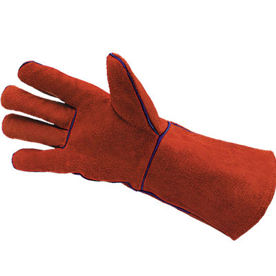 Краги изготовлены полностью из крашенного спилка. Термоспилок КРС красного цвета, швы прошиты КЕВЛАРовой нитью. Дополнительная защита запястья. Высокая стойкость к разрыву и истиранию, ограниченная защита от пореза и прокола. Используются при сварочных работах Толщина: 1,3 мм Длина: 35 см