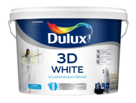 Краска Dulux Новая ослепительно белая матовая 3D в/д краска для стен и потолков 2,5л