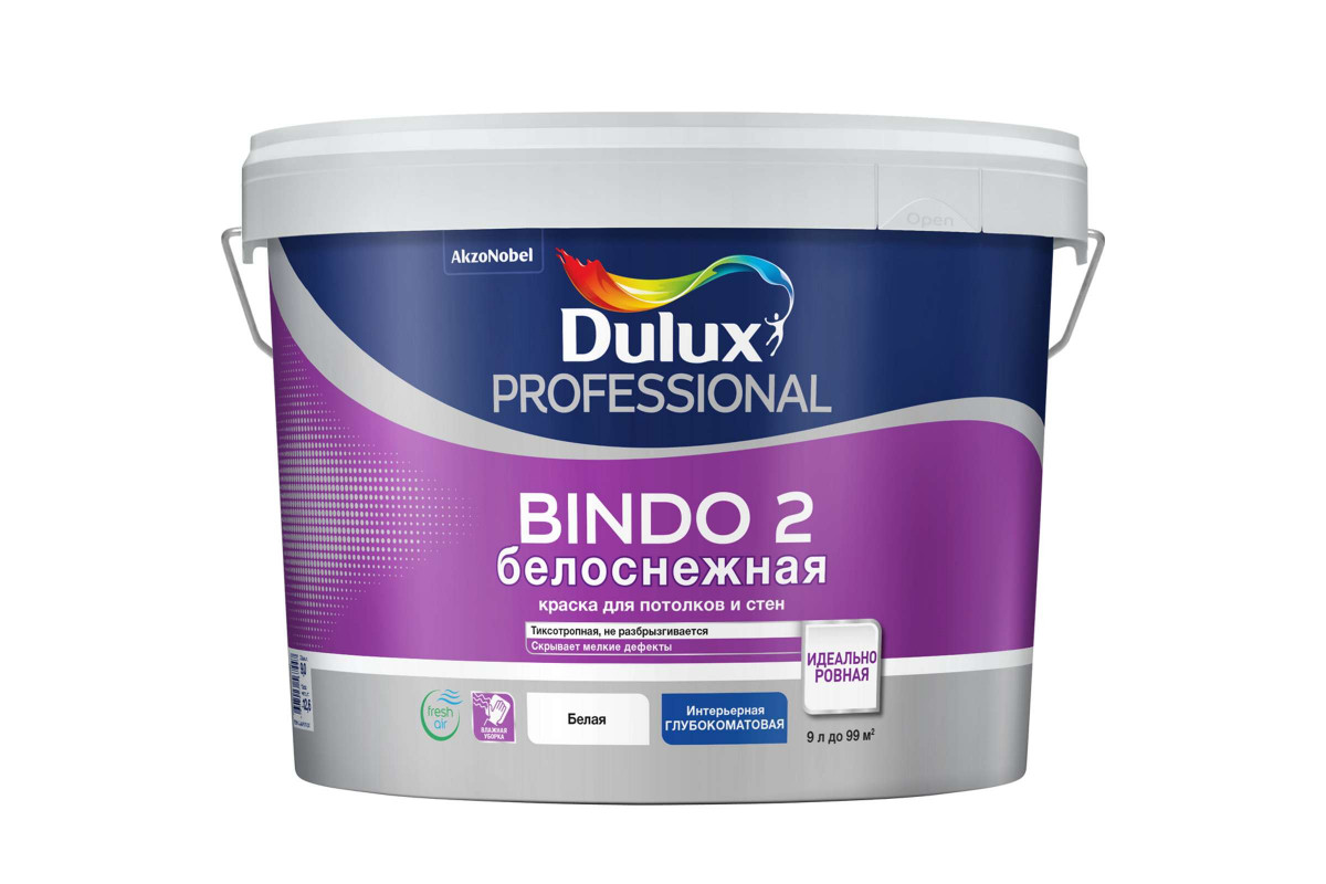 Краски BINDO – это высокий профессиональный уровень отделки: качество, удобство и скорость. Увеличенное содержание белого пигмента повышает укрывистость и сокращает расход. Глубокоматовая водно-дисперсионная краска повышенной белизны для высококачественной отделки потолков и стен в помещениях с умеренной нагрузкой. Оптимальное открытое время помогает создать идеально ровную поверхность. Скрывает мелкие дефекты. Тиксотропная: наносится без брызг и потеков, легко разравнивается; с нейтральным запахом.