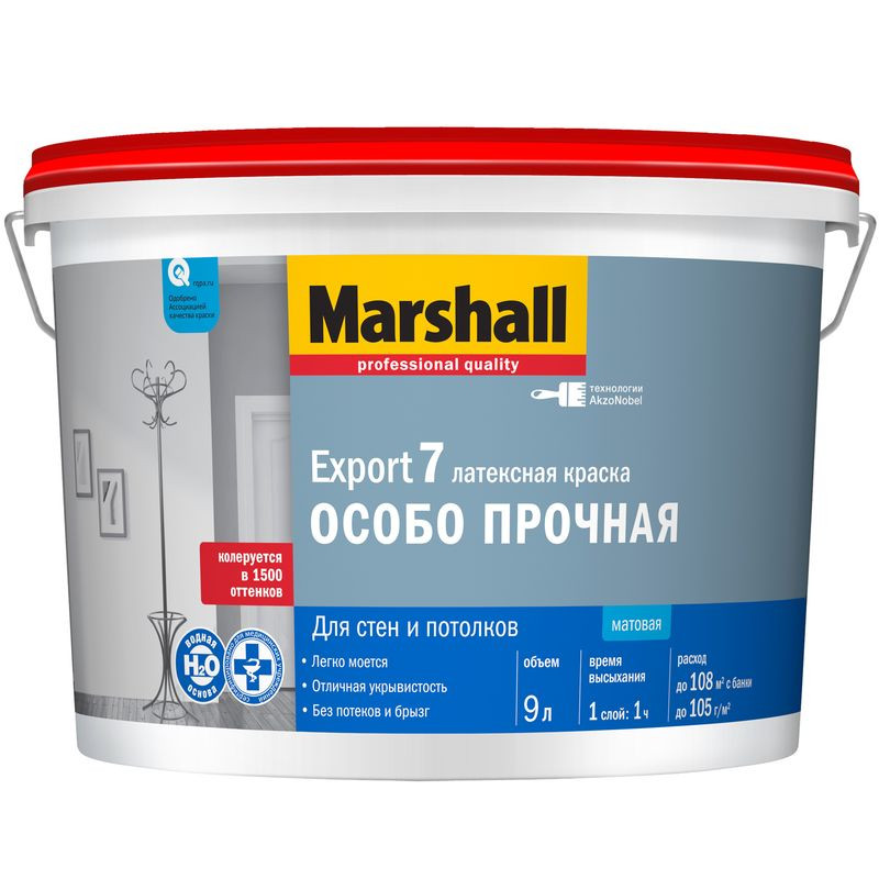 Матовая водно-дисперсионная (латексная) краска для стен и потолков. При нанесении образует покрытие с высокими декоративными свойствами и отличной адгезией. Подчеркивает рельеф поверхности. Окрашенная поверхность выдерживает мытье с применением мягких моющих средств. Краска легко наносится и быстро высыхает.