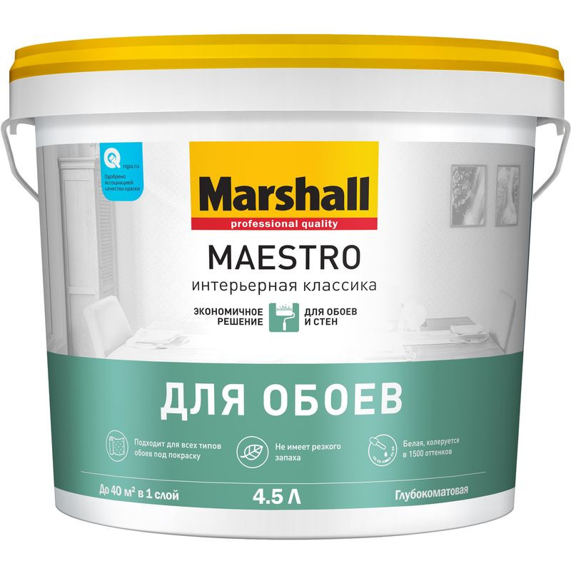 Краска Marshall MAESTRO Интерьерная классика для обоев белая BW 4,5л