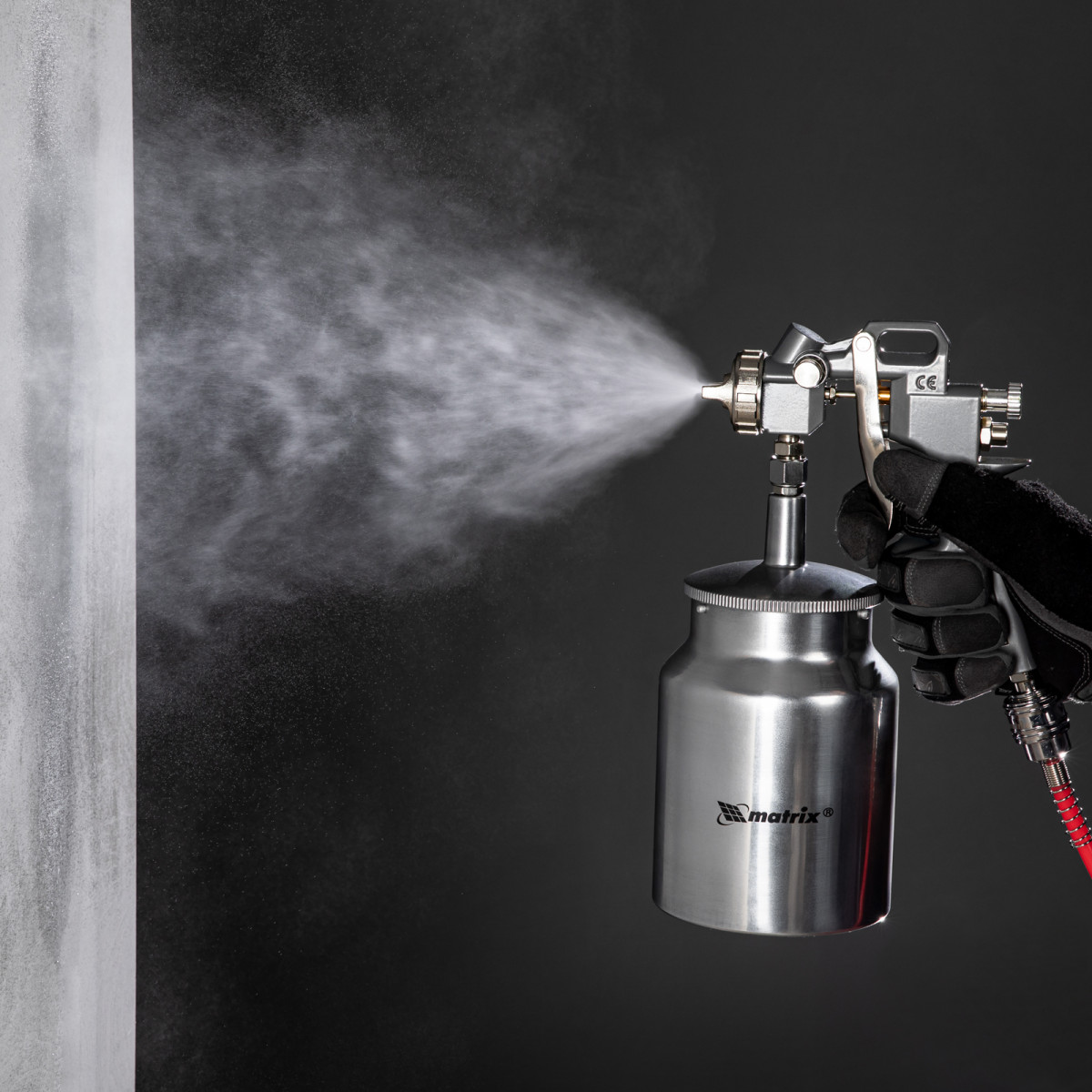 Пневматический краскораспылитель Matrix 57316 с нижним бачком объемом 1,0 л и соплами диаметром 1,2, 1,5 и 1,8 мм используется для окрашивания металлических, деревянных, керамических и пластмассовых поверхностей. Благодаря сменным соплам краскораспылитель может работать с различными по густоте составами: лаком, шпаклевкой, краской. Он пригодится на стройке, в автомастерской и на мебельном производстве.