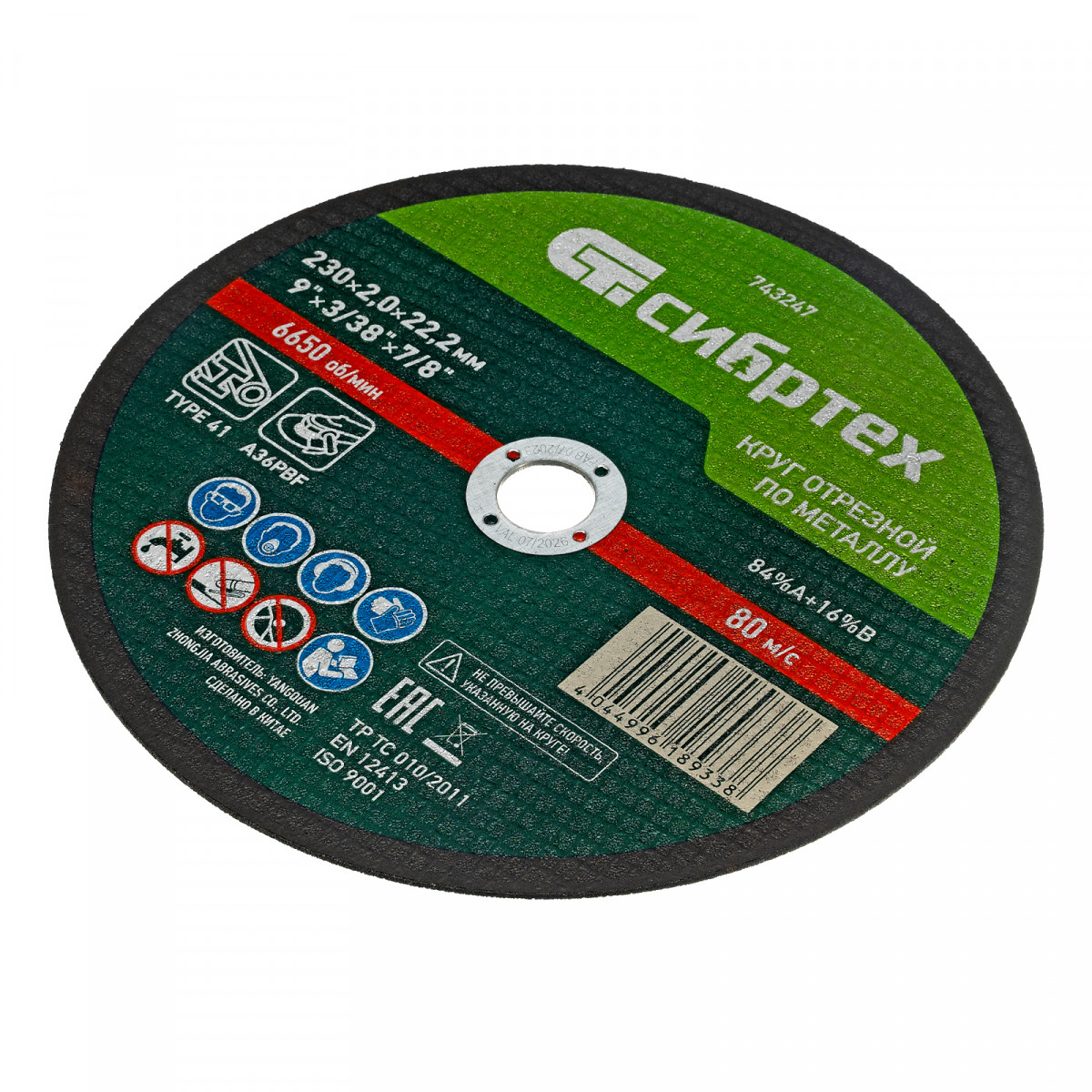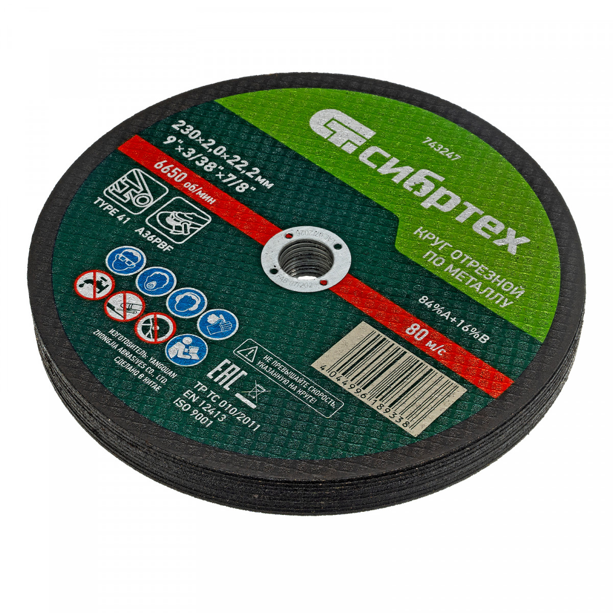 Круг отрезной по металлу, 230 х 2,0 х 22,2 мм, 84%A+16%B, в пленке, 10 шт Сибртех