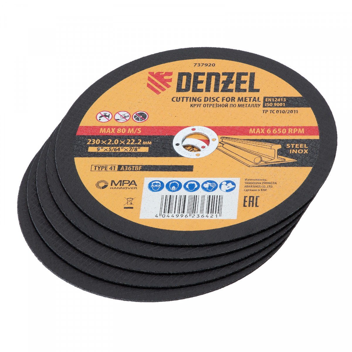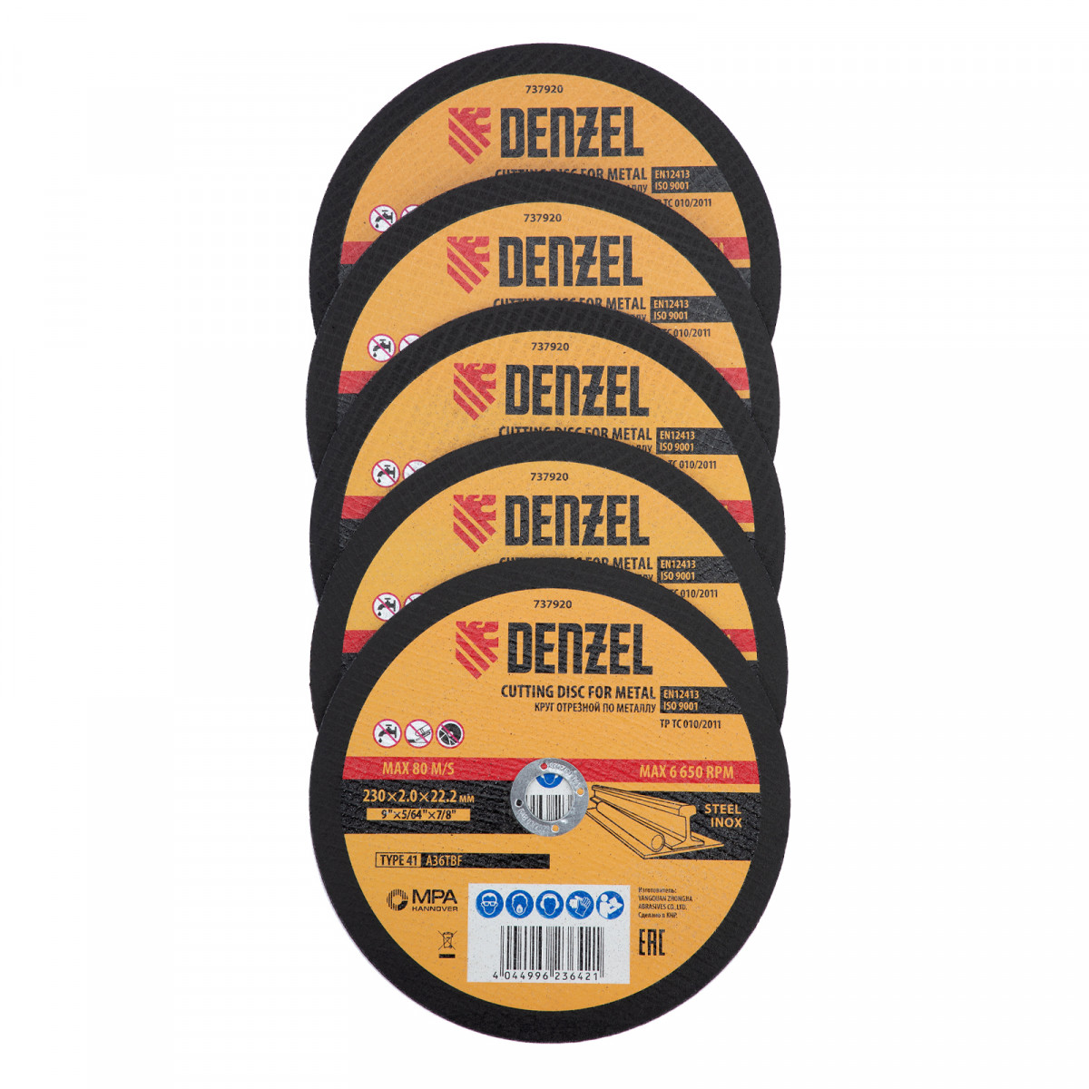 Круг отрезной по металлу, 230 х 2,0 х 22,2 мм, A36TBF, в метал.банке, 5 шт. Denzel