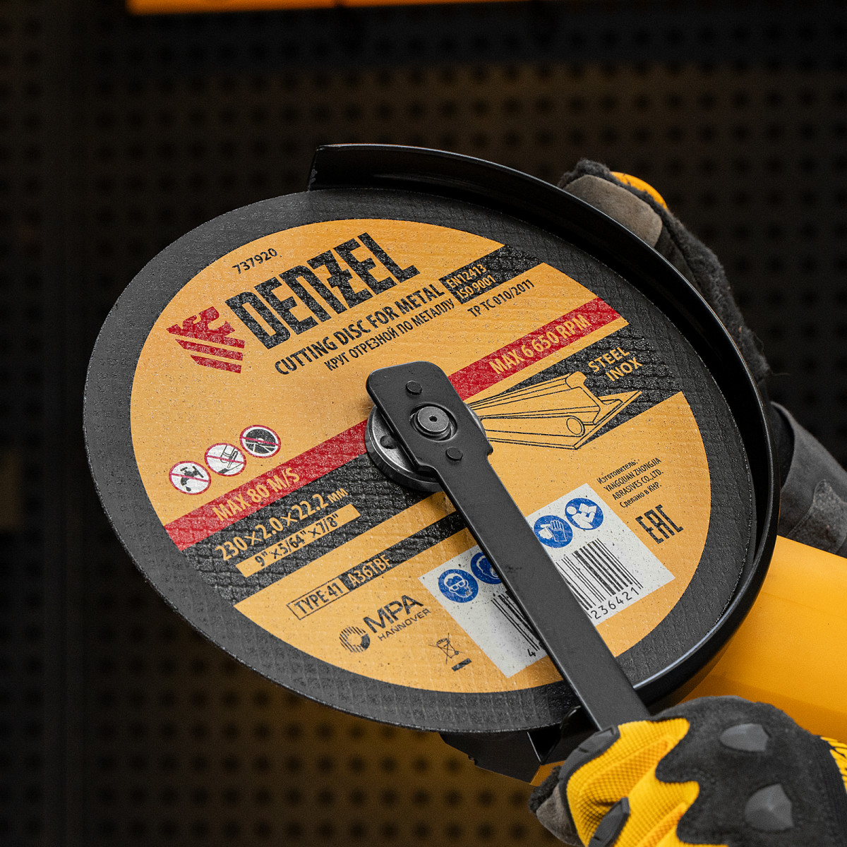 Круг отрезной по металлу Denzel 737920 (A36TBF) размером 230 х 2,0 х 22,2 мм, 5 шт. в металлической банке, устанавливается на УШМ соответствующего типоразмера. Универсальная оснастка подходит для резки легированных (нержавеющих) и углеродистых (черных) сталей. Набор предназначен для профессионального использования и большого объема работ (сухой рез).