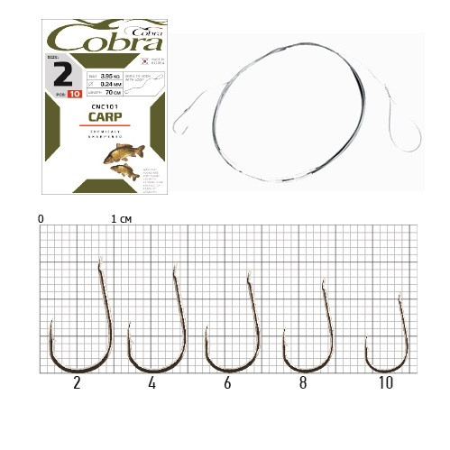 Крючки с поводком Cobra CARP 70cm, 0,24mm, разм.2, 10шт.