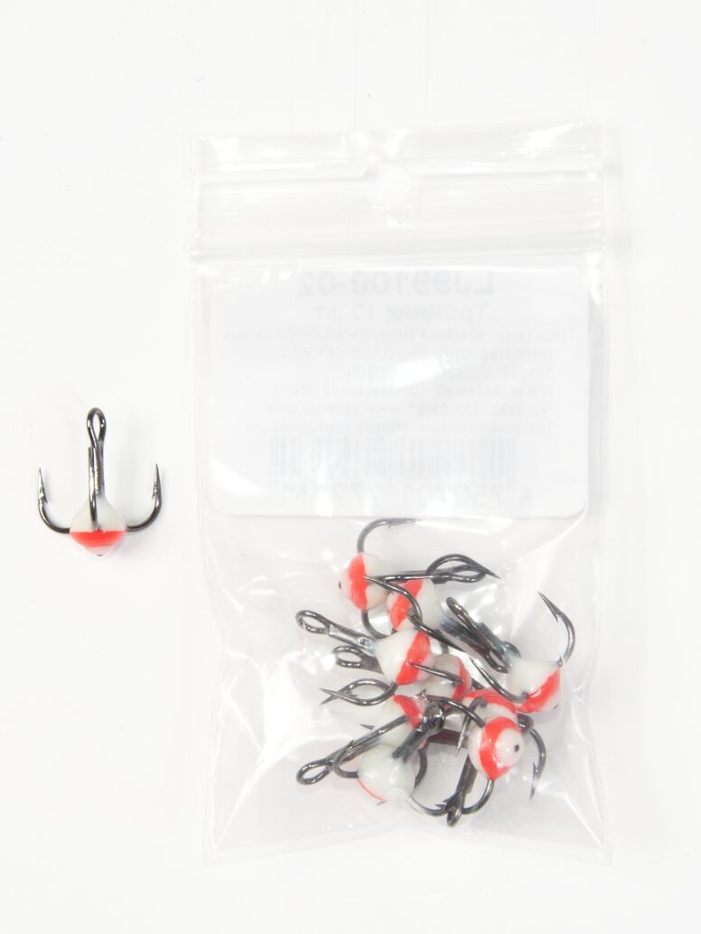 Тройники с пластиковой цветной каплей. Используется для комплектации балансиров и вертикальных блёсен.