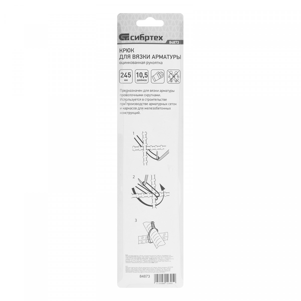 Крюк для вязки арматуры, 245 мм, оцинкованная рукоятка Сибртех