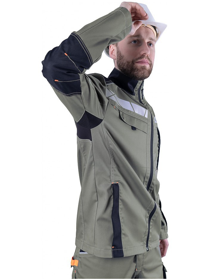 • рукава, соответствующие естественному положению рук при работе, налокотники с вытачками из износостойкой ткани (100% полиамид 6.6)