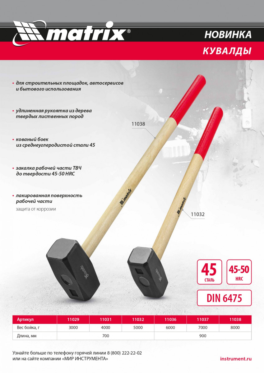 Кувалда Matrix 11031 длиной 700 мм, с кованой головкой весом 4000 г и деревянной рукояткой, — ударный инструмент, позволяющий демонтировать бетонные, каменные и кирпичные конструкции, а также проводить сборочные работы. Удлиненная рукоятка повышает силу наносимых ударов, кованая головка обеспечивает надежность и долговечность инструмента. Кувалда применяется при проведении строительных работ, будет полезна в гараже или на загородном участке.