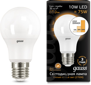 Диммируемые светодиодные лампы Gauss включают в себя подмножества декоративных и софитных ламп небольшой мощности. Эти диодные лампы не нуждаются в отдельном специальном LED диммере или драйвере, и могут быть использованы в цепи с обычным диммером, предназначенным для ламп затемнения накаливания.