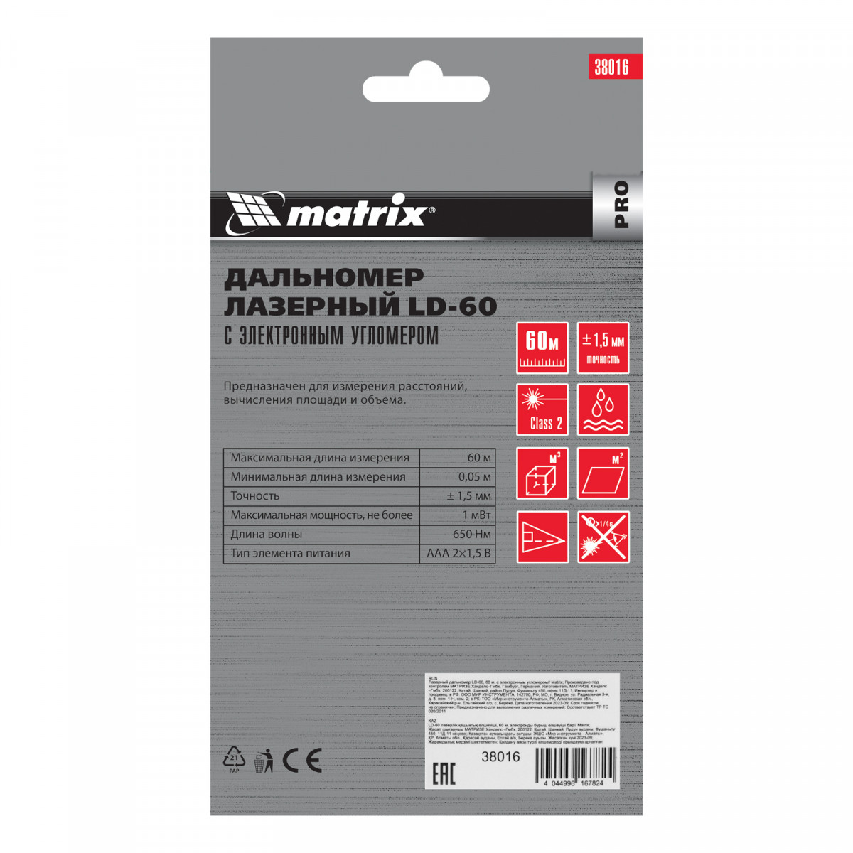 Лазерный дальномер LD-60,60 м,с электронным угломером Matrix