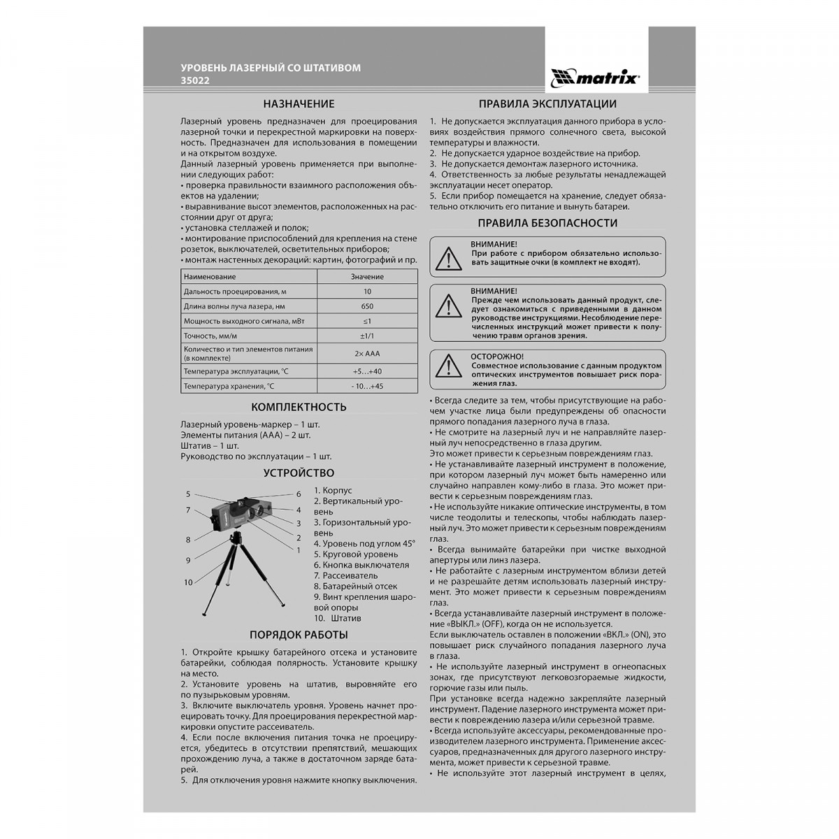 Лазерный уровень, 180 мм, 220 мм штатив, 4 глазка Matrix