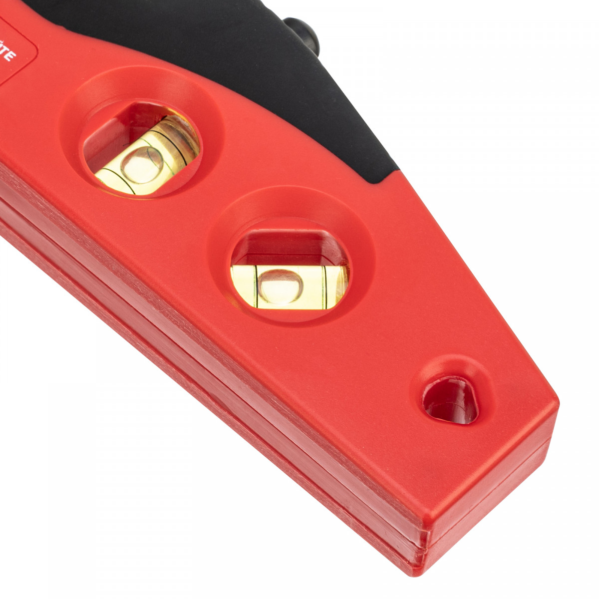 • Удобное хранение и транспортировка — уровень весит 213 г, его габариты составляют 24 х 12,7 х 3 см.