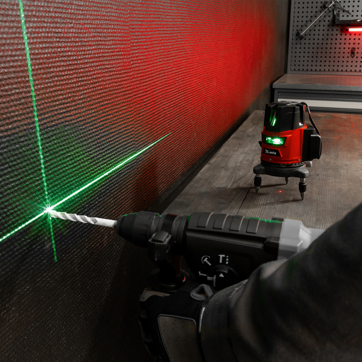 Лазерный уровень MTX CRL-30G 35036 с резьбой 5/8″ под штатив, в комплекте с батарейками, проецирует на поверхность 1 горизонтальный, 4 вертикальных луча зеленого цвета и точку отвеса дальностью до 30 м. Подходит для бытового применения в помещениях. Погрешность измерений составляет всего ±1,5 мм 5 м.