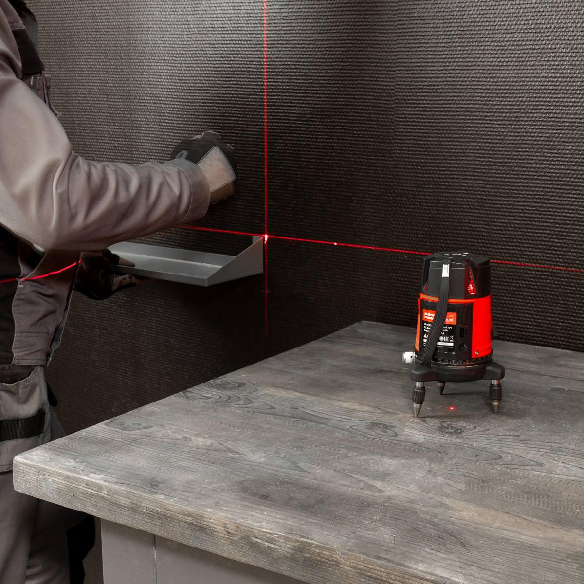 - Широкая комплектация — инструмент поставляется в удобном кейсе, с очками для распознавания лучей на большом расстоянии и при ярком освещении.
