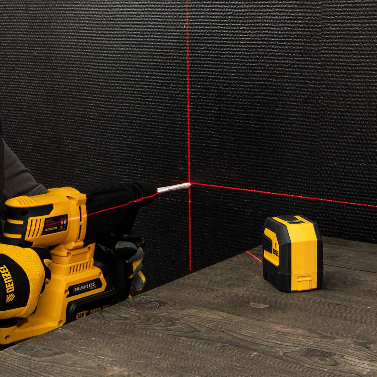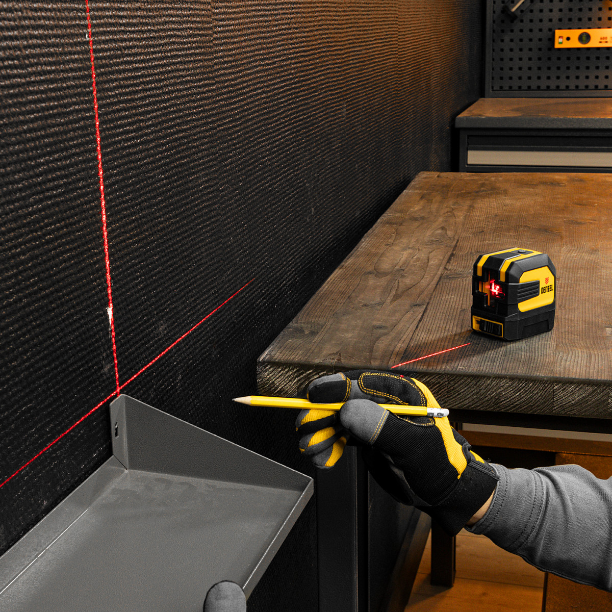 - Четкая проекция — красные лазеры обеспечивают хорошую видимость линий даже при дневном освещении.