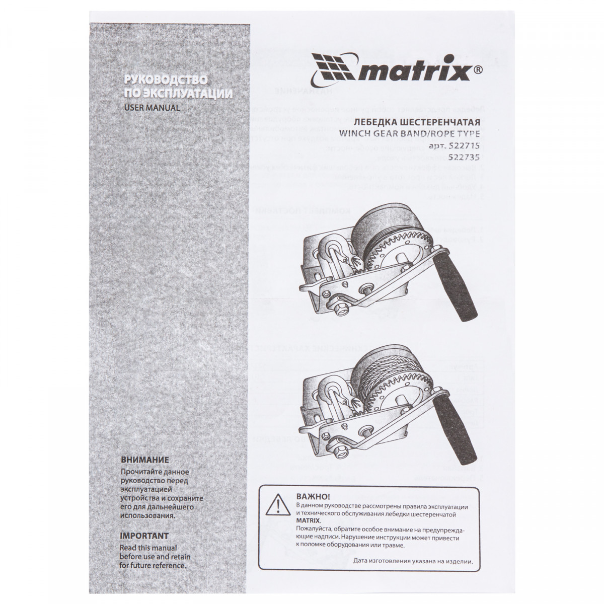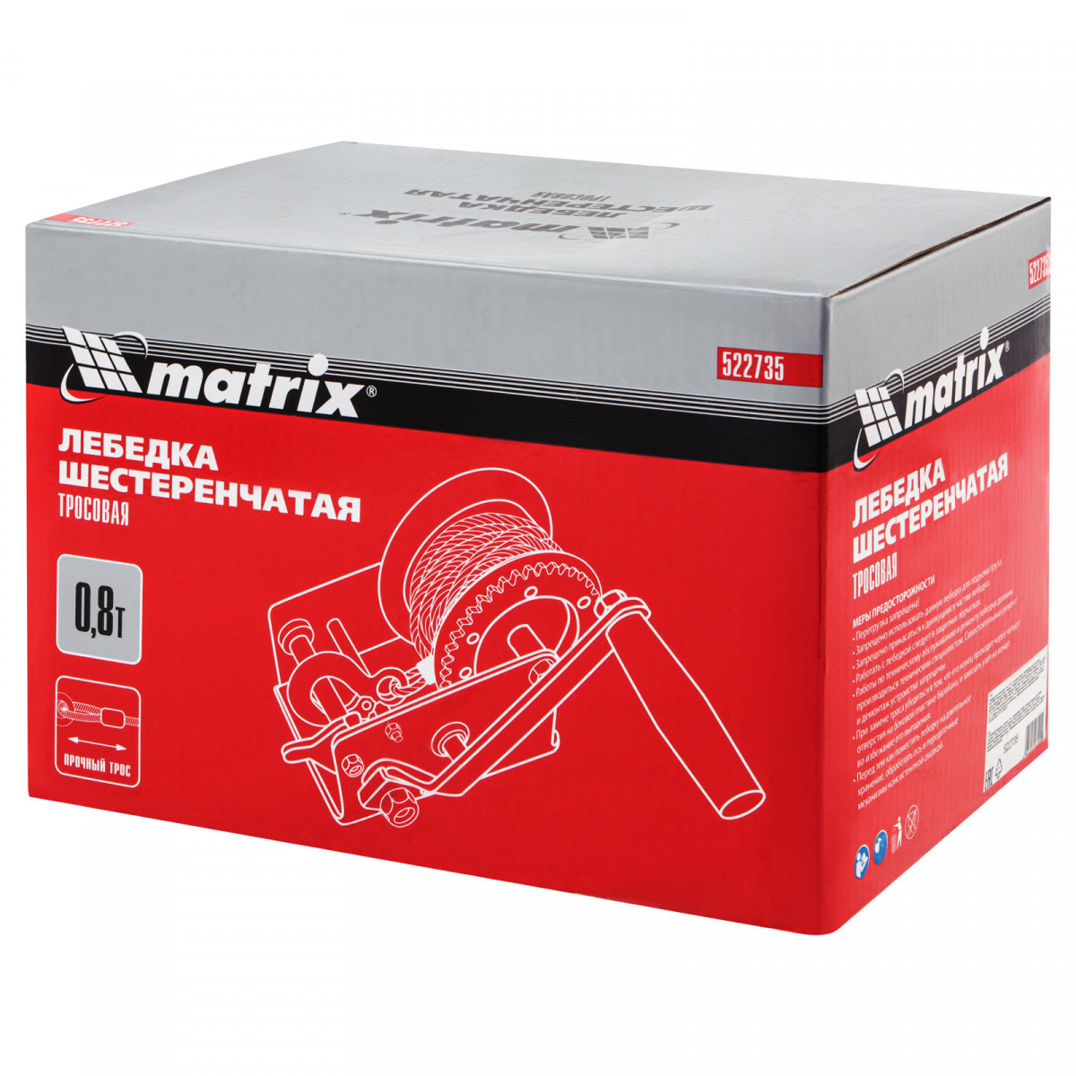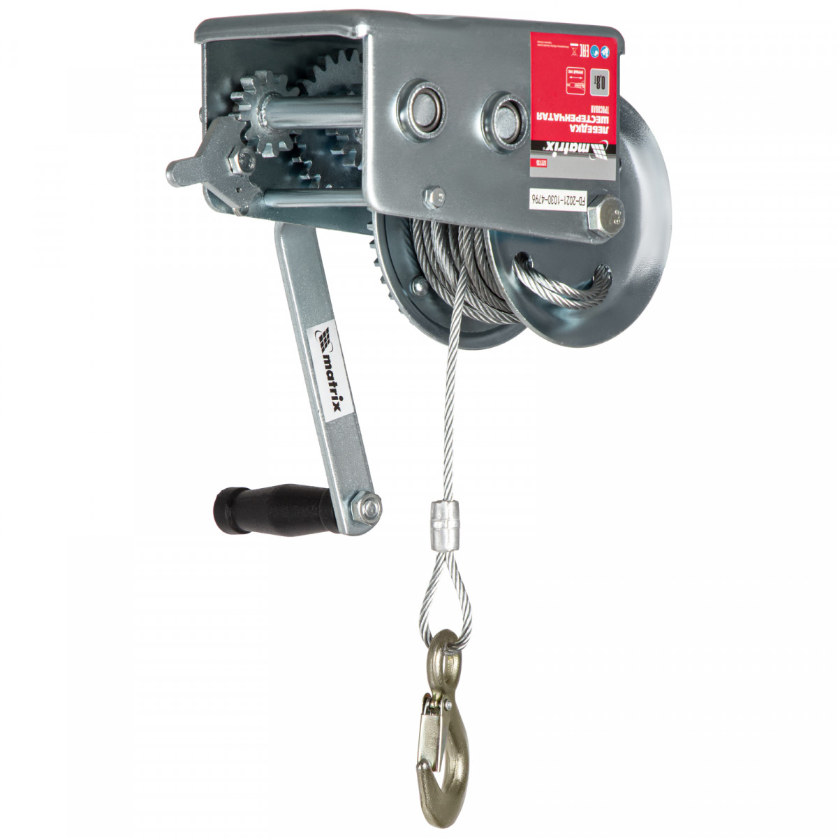 Лебедка шестеренчатая, тяга 0.8 т, тросовая Matrix