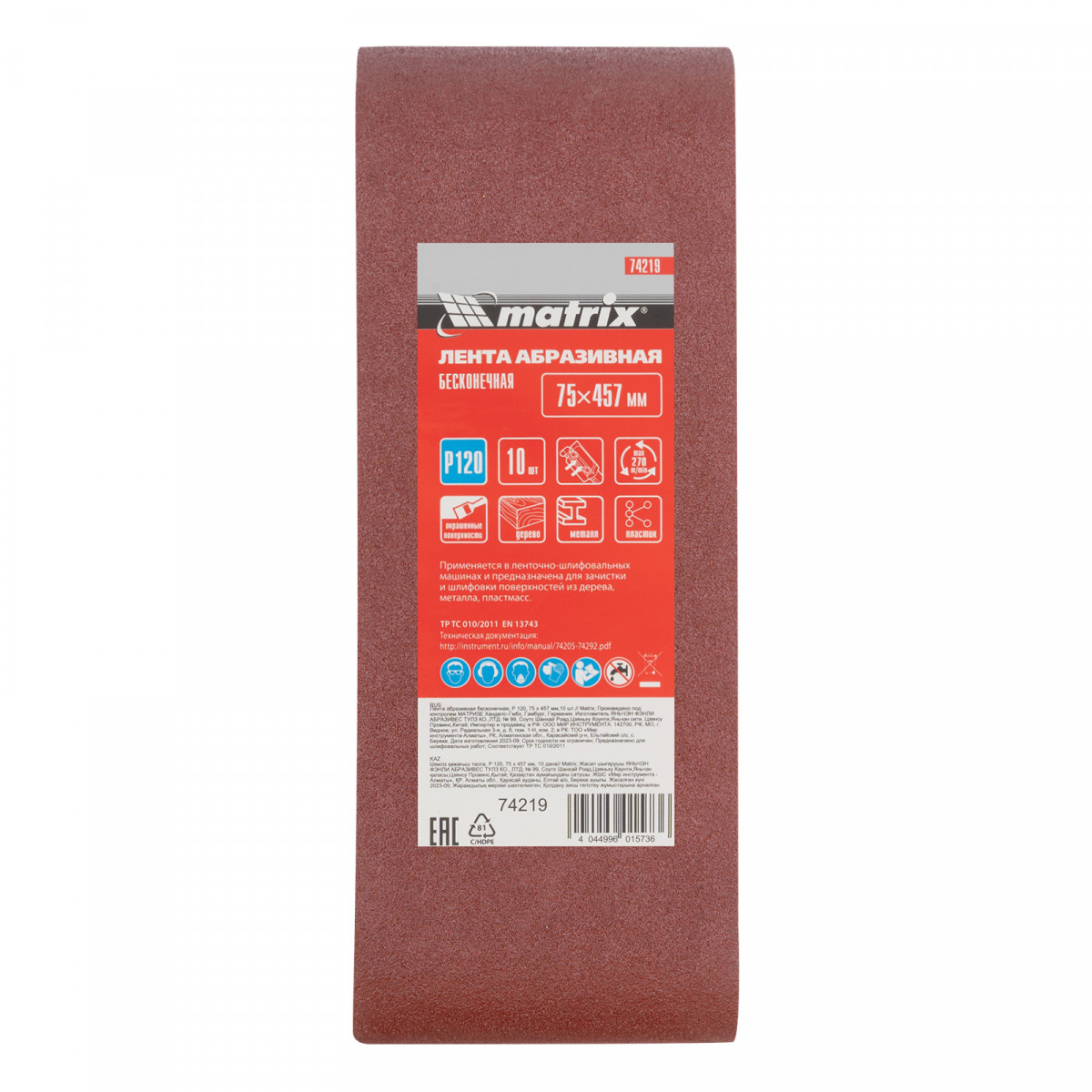 Бесконечная абразивная лента Matrix 74219 с зернистостью P 120, 10 шт. в упаковке, устанавливается на ленточную шлифовальную машину, совместимую со сменными элементами размером 75 х 457 мм. Применяется для чистовой обработки деревянных и металлических поверхностей.