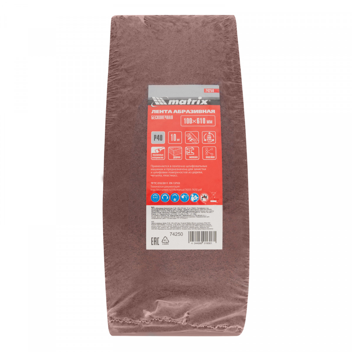 Лента абразивная бесконечная, P 40, 100 х 610 мм, 10 шт Matrix