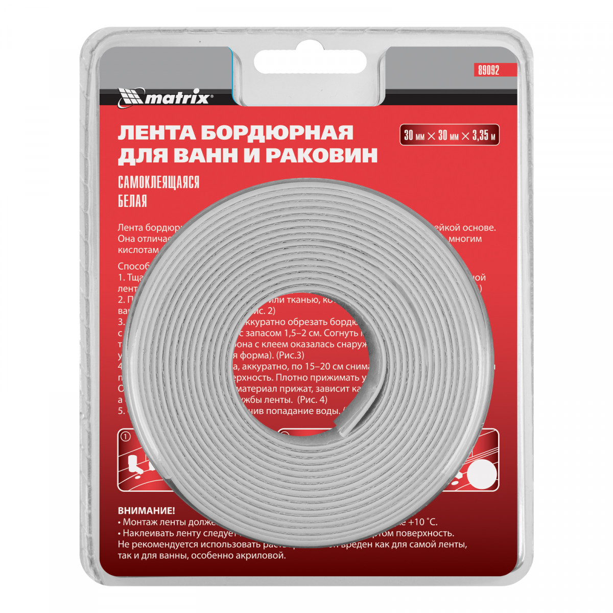 Бордюрная лента Matrix 89092 размером 30 мм х 30 мм х 3,35 м используется для герметизации швов ванн, раковин, столешниц, подходит для фиксации в углах и стыках стен. Надежно фиксируется на глянцевых поверхностях и выдерживает эксплуатацию в условиях повышенной влажности.