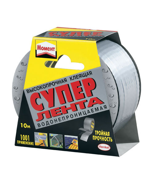 Универсальная самоклеящаяся Супер Лента Момент, созданная по уникальной технологии, состоит из 3 слоев: полиэтилена, тканевого усиления и клеевого слоя. Благодаря им лента обладает рядом преимуществ перед обычной самоклеящейся лентой.Можно использовать для:- упаковки, защиты товаров от проникновения влаги и воды;- герметизации швов, щелей, а также водяных, газовых и вентиляционных труб и шлангов;- изоляционных работ;- временного ремонта;- маркировки;- для наружных и внутренних работ.Основные свойства:- способность прочно приклеиваться на любые поверхности;- высокая прочность (выдерживает вес 17 кг);- водонепроницаемость и влагостойкость;- устойчивость к воздействию температур (+70 °С) и УФ лучей;- удобство использования (не требуется ножниц).