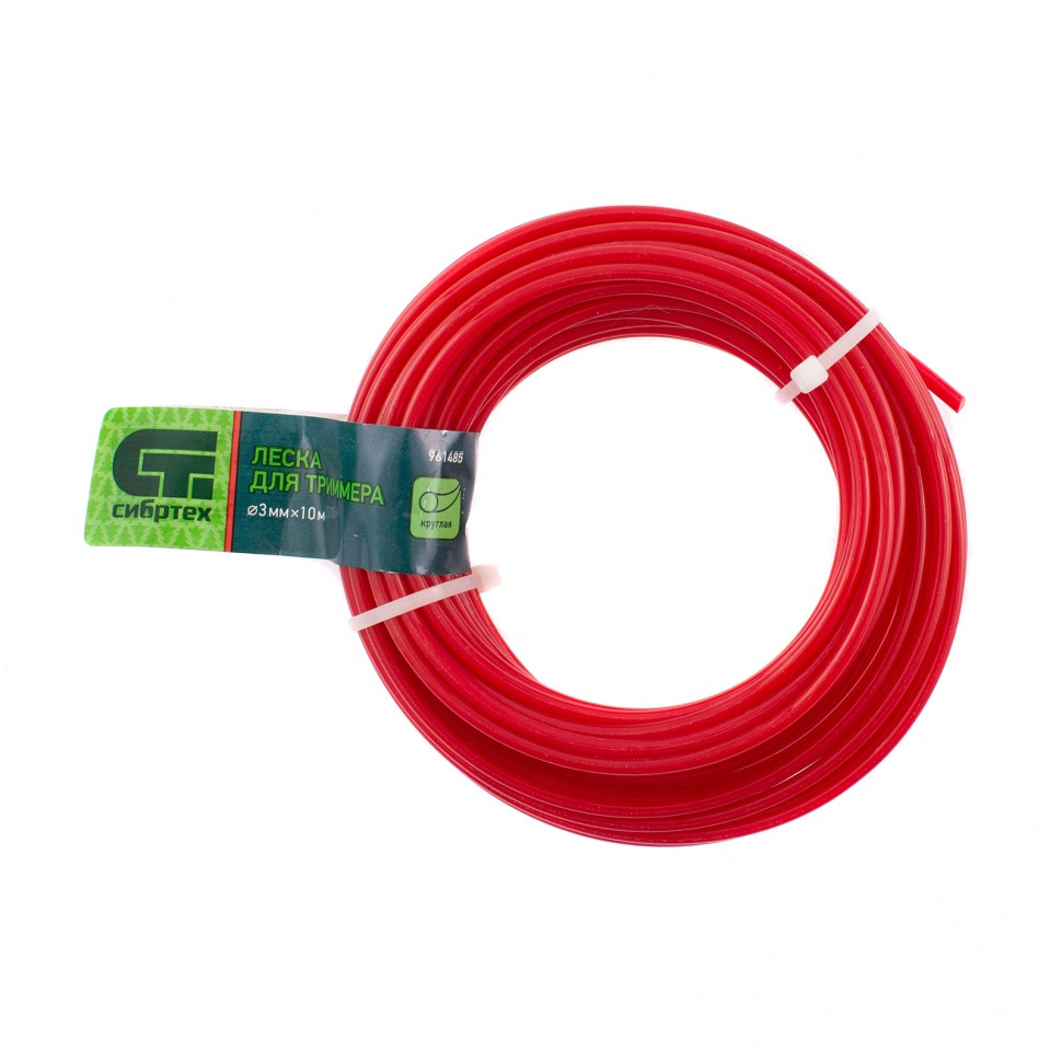 Леска Сибртех 961475 с круглым сечением, диаметром 3,0 мм и длиной 10 м, заправляется в катушку бензиновых триммеров.
