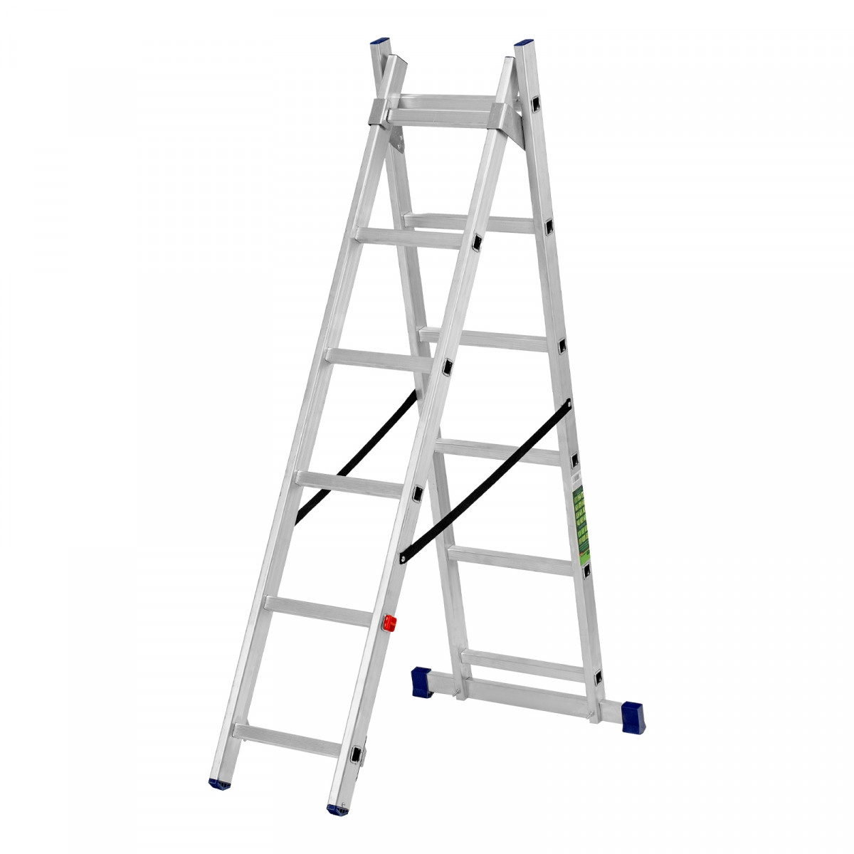 Лестница, 2 х 6 ступеней, алюминиевая, двухсекционная, Сибртех