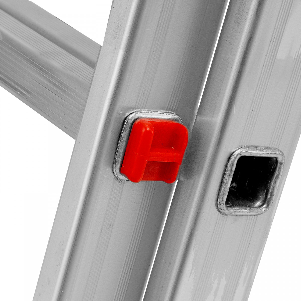 • Устойчивость — лестница оснащена съемным стабилизатором, выравнивающим ее положение на горизонтальных поверхностях.