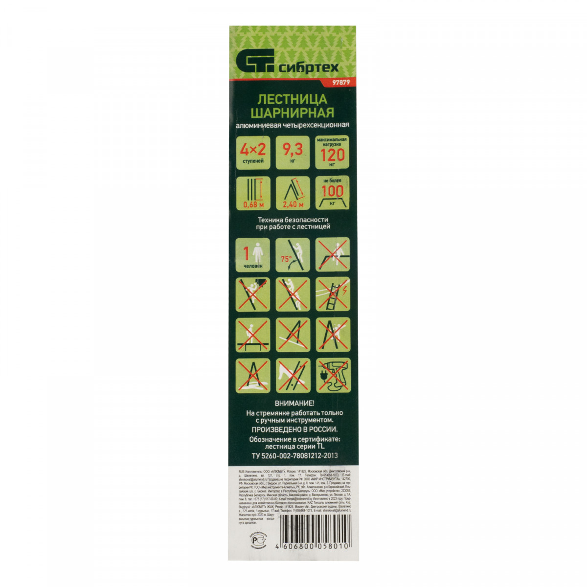 Лестница шарнирная алюминиевая, 4 х 2 ступени, Сибртех