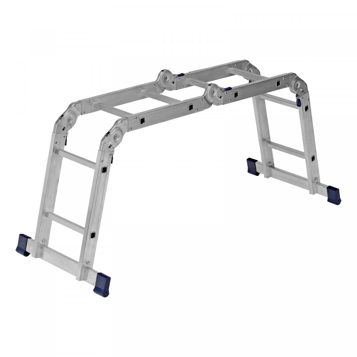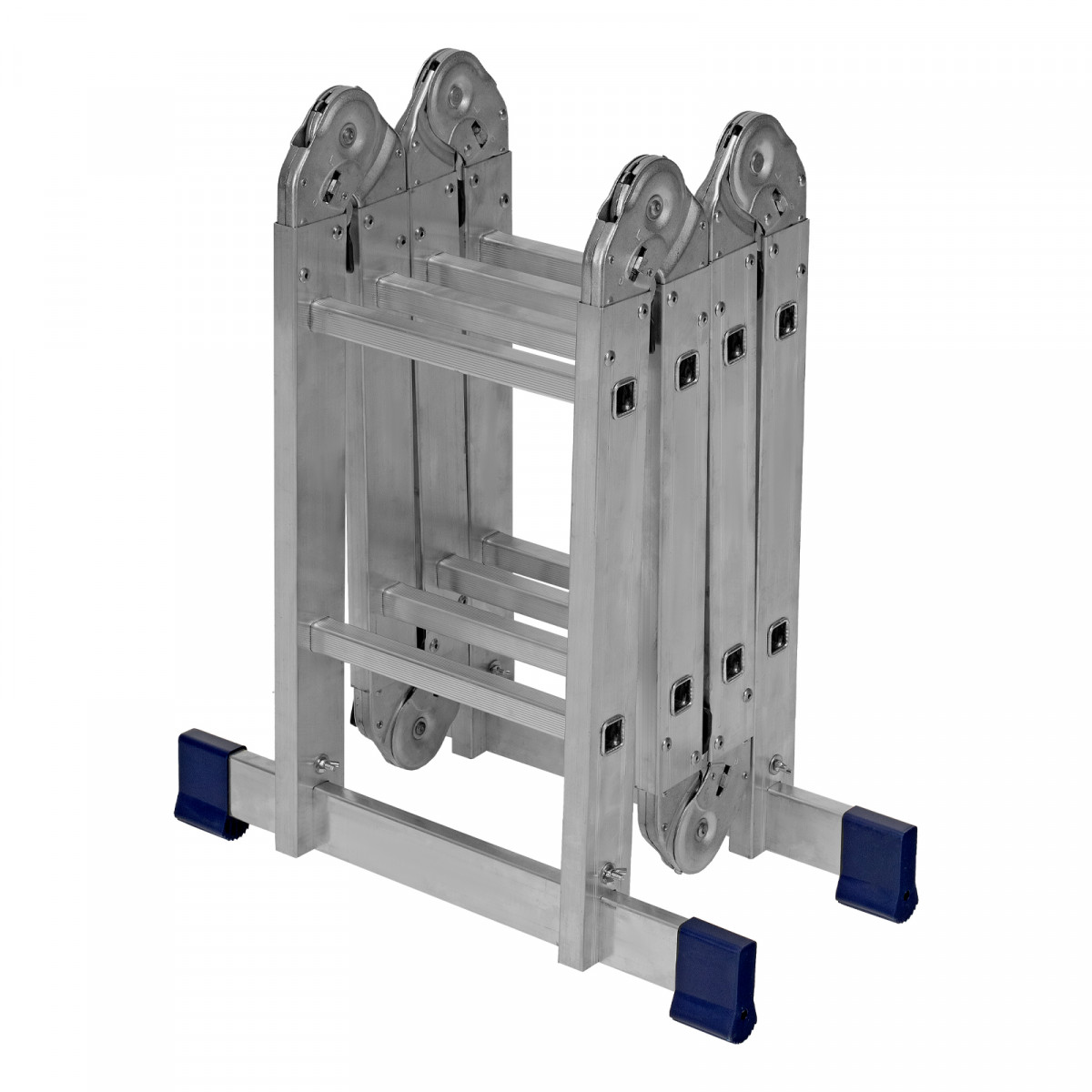 Шарнирная алюминиевая лестница Сибртех 97879 представляет собой 4 секции по 2 ступени, которые можно настроить в нескольких рабочих положениях. Она может использоваться в качестве приставной лестницы, двухсторонней стремянки и помоста. Будет полезна как в быту, так и на небольших стройках, в гараже и магазинах.