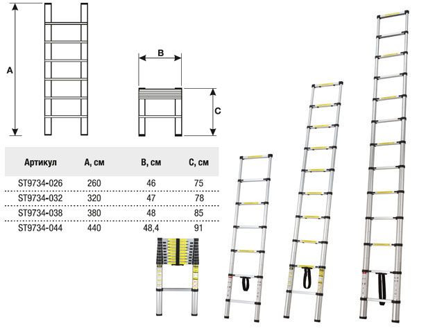 Лестница телескопическая 1-секц. 13 ступ. STARTUL