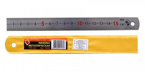 Металлическая линейка Энкор, 150мм 10850 - мерительный инструмент, применяющийся для линейных расстояний длиной до 15 см. Прочный и долговечный металлический инструмент. Имеется чехол и отверстие на конце полотна для подвесного хранения линейки.