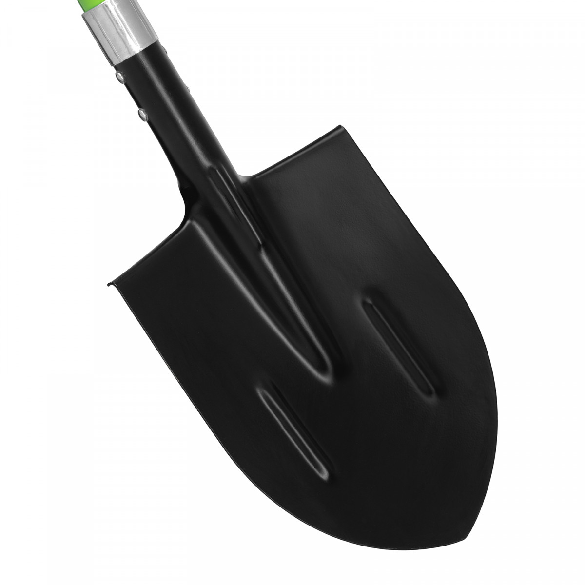 • Продуманная конструкция — фибергласовый черенок не утяжеляет лопату и не разрушается под действием ультрафиолета, а удлиненная цельновырубная тулейка предотвращает его излом.