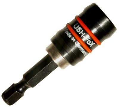 Магнитные держатели USH применяются для удобства быстрой смены насадок с хвостовиком 6,35мм, а также для работы в труднодоступных местах. Разработанный компанией USH метод холодной ковки используется при полностью автоматизированном изготовлении стандартных битодержателей. Сначала соединяются гильза из нержавеющей высококачественной стали с хвостовиком из высокосортной инструментальной стали, что способствует высококачественному силовому и геометрическому соединению. На данном этапе работы материал уплотняется со стороны хвостовика. За счёт этого получается большое повышение прочности, что повышает срок службы магнитных держателей. Применение этого метода – это гарантия высокой точности кругового движения. Метод холодной ковки используется и в последующем этапе изготовления внутренних профилей держателей. На данном этапе изготовления материал принимает окончательно нужную форму.