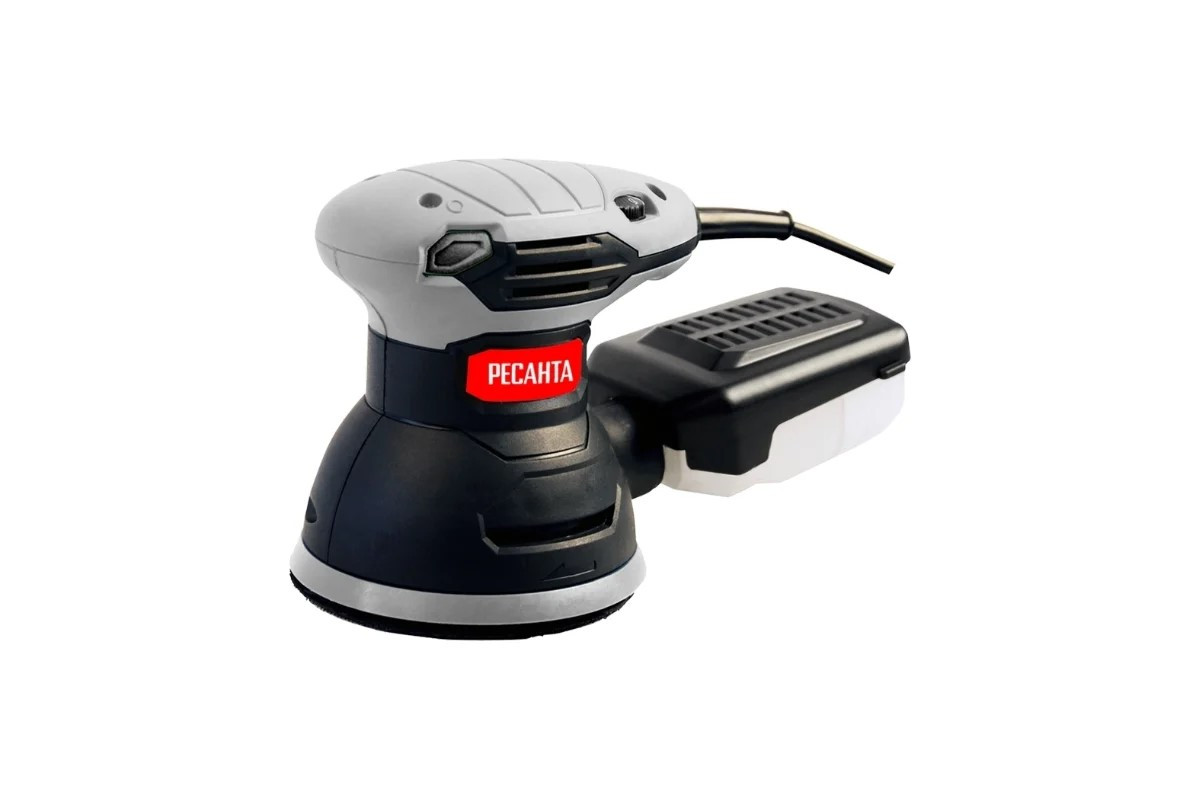 Шлифмашина Ресанта ЭШМ-125К состоит из пластикового корпуса, внутри которого находится электромотор с номинальной мощностью 300 Вт. Он обеспечивает вращение круглой подошвы через передаточный механизм. Особенность инструмента заключается в том, что подошва вращается по орбите и вокруг своей оси, благодаря чему достигается отменный результат шлифовки. Скорость вращения легко регулируется интенсивностью нажатия кнопки включения. Частота вращений составляет от 4 000 до 14 000 об/мин. Эксцентриковая шлифовальная машина отлич