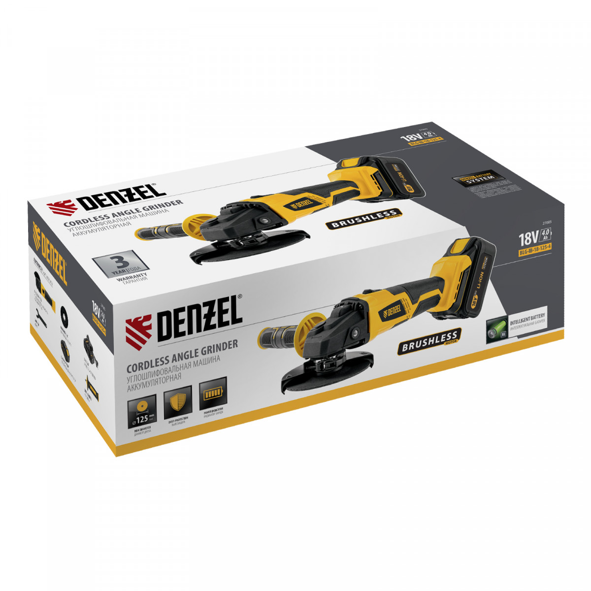 Машина углошлифовальная аккумуляторная бесщет. BLG-IB-18-125-4, Li-ion, 18 В Denzel