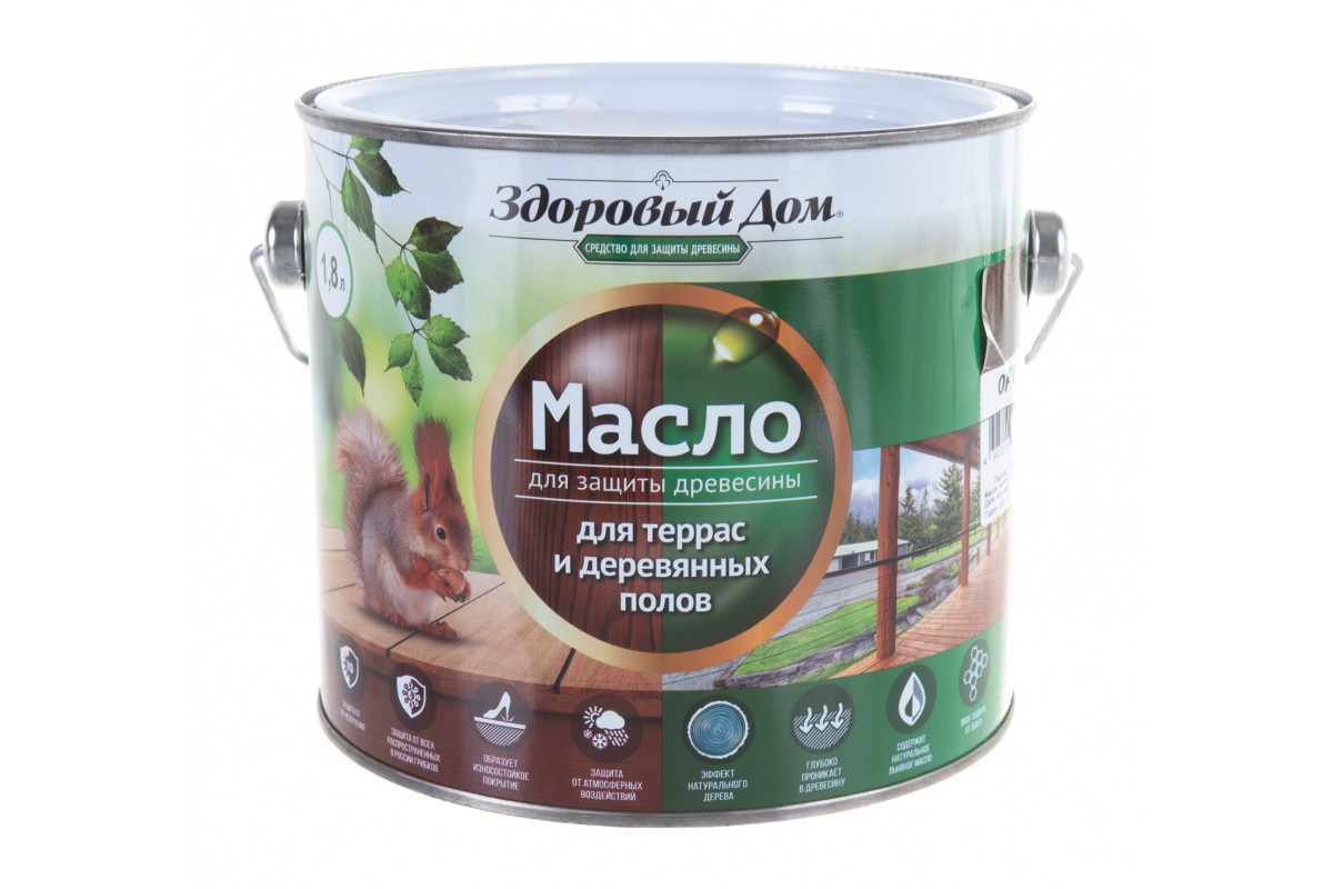 Масло для террас и деревянных полов Здоровый Дом Орех 1,8л