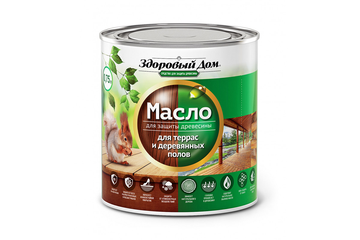 Масло для террас и деревянных полов Здоровый Дом Тик 0,75л