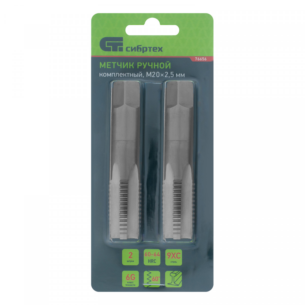 Метчик ручной М20 х 2.5 мм, комплект из 2 шт Сибртех