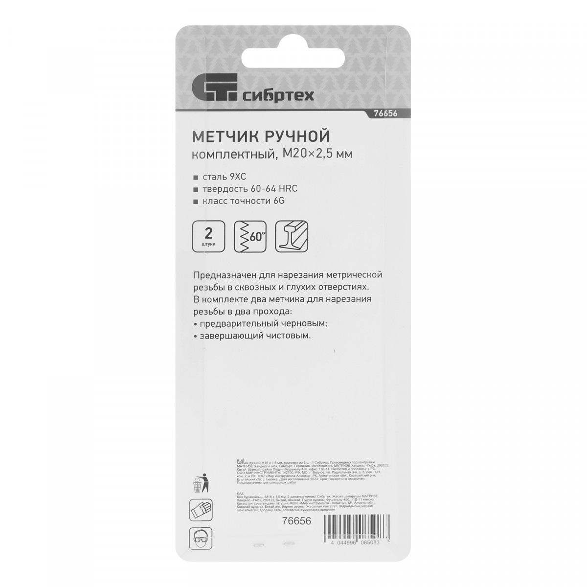 • Высокая точность резьбы — в наборе 2 метчика: черновой для первого прохода и чистовой для финишной доводки.